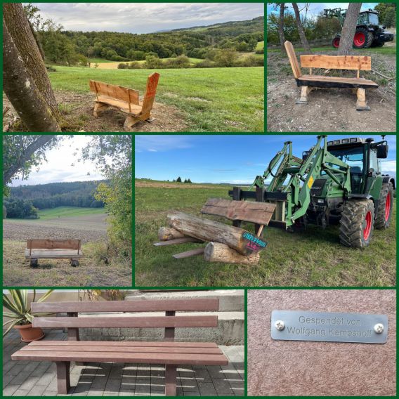 in den letzten Wochen hat sich in unserer Gemarkung wieder einiges getan: Drei neue Ruhebänke sind aufgestellt worden – und eine vierte steht auch schon bereit. Leider kann sie wegen der aktuellen Baustelle noch nicht an ihren Platz, aber das wird nachgeholt, sobald es dort wieder ruhig ist.