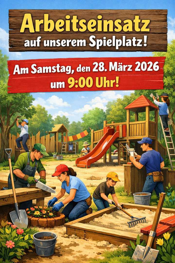 der Gemeinderat und ich würden gerne zu einem Arbeitseinsatz auf dem Spielplatz einladen. Geplant ist dieser für Samstag, den 28. März 2026 – 09:00 Uhr.