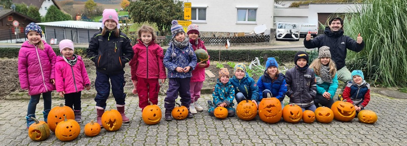 viel Spaß gemacht und vielen Dank an die fleißigen Kinder und Eltern. Bin immer noch beeindruckt welche tollen „Gesichter“ geschnitzt und gemalt wurden, es war ein sehr schöner Samstagvormittag. Es werden von Jahr zu Jahr mehr Kürbisse, die vor den Haustüren stehen!