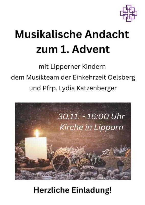30.11.2025 16:00 Uhr Musikalische Andacht zum 1. Advent