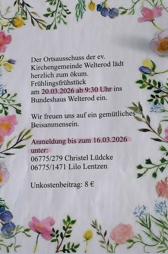 Ev. Kirchengemeinde Welterod Tel. 06775-98003 - Fax 06775-98005 e-Mail ev.kirchengemeinde.welterod@ekhn-net.de