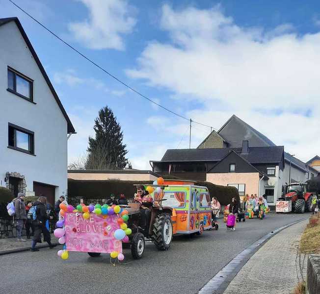 Die Zugstrecke hat sich in diesem Jahr etwas verändert, nach wie vor starten wir Ortseingang in der Hauptstraße (Richtung Lautert), laufen dann die Hauptstraße entlang bis zur Einmündung Werkerbachstraße, rechts durch den Brühl und lösen uns dann vor dem Dorfgemeinschaftshaus in der Schulstraße auf.